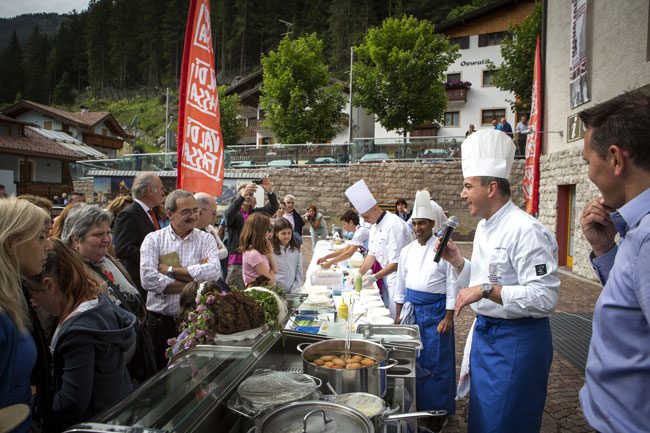 Dove lo slogan è “una valle buona” non può che esserci il migliore festival gastronomico dell’estate. Così, dopo il successo delle prime due edizioni in “Val di Fassa, una valle buona” torna, tra luglio e settembre, “Fassa Fuori Menù”. La rassegna vede una decina dei più bravi cuochi della valle, guidati da due stellati, uscire dalle cucine per far conoscere, in location insolite, le peculiarità della gastronomia valligiana. Le star indiscusse della rassegna che ha conquistato, oltre a tanti palati dei vacanzieri pure quelli di giornalisti specializzati e food blogger che hanno dedicato loro servizi su diversi media e post golosi su tutti i principali social, sono: Paolo Donei (Malga Panna, Moena) e Stefano Ghetta (L Chimpl da Tamion, Vigo) che vantano entrambi, a pieno titolo da anni, una stella Michelin. A dar loro manforte, i segnalati nelle più accreditate guide gastronomiche Martino Rossi (Rifugio Fuchiade, Soraga) e Nicola Vian (El Filò, Pozza) e poi Alessandro Iori (Hotel Rita Canazei), Gianluca Scalvini (El Pael, Canazei), Moreno Valentini (De Tofi - Hotel Astoria, Canazei), Matthias Trottner (Baita Checco, Vigo), Paolo Naccari (La Montanara, Canazei), la new entry Alessandro Bellettato (Hotel Italia, Canazei) e il sommelier internazionale Roberto Anesi (El Pael) a cui sono affidati gli abbinamenti tra le creazioni culinarie e le bollicine di montagna Trentodoc.