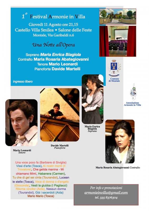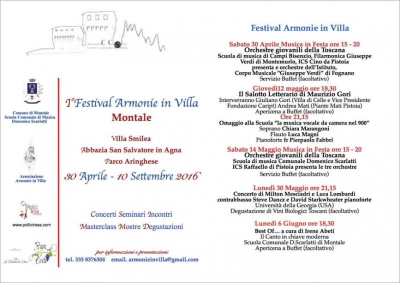Dal 30 Aprile al 10 Settembre si terrà a Montale la prima edizione del Festival Armonie in Villa