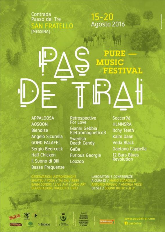 Manca poco alla seconda edizione del PAS DE TRAI – PURE MUSIC FESTIVAL, il giovanissimo festival siciliano che già al suo esordio, lo scorso anno, ha saputo ritagliarsi un posto speciale tra artisti e appassionati della buona musica live. Con una proposta musicale ancora più ricca – che spazia dal soul al rock, dalla musica psichedelica a quella elettronica, passando per R&B, jazz, funk e hip-hop – e tante attività all’aria aperta, il Pas De Trai avrà luogo dal 15 al 20 agosto a San Fratello (Messina) presso la Contrada Passo dei Tre (SS 284 – Km 18.4), all’ingresso di un querceto secolare immerso nella suggestiva cornice del Parco dei Nebrodi.