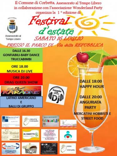 Sabato 16 Luglio, a partire dalle ore 16.00, presso il parco di Via Repubblica prima edizione del "Festival d'estate"; gonfiabili, truccabimbi e baby dance per i più piccoli, musica live, karaoke, anguriata e tanto altro ancora!