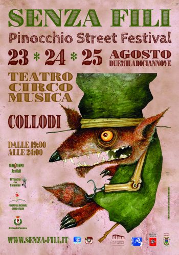 Torna dal 23 al 25 Agosto Senza Fili - Pinocchio Street Festival, la grande kermesse nel paese del burattino più famoso del mondo: 50 spettacoli in 3 giorni al Giardino di Villa Garzoni, Parco di Pinocchio, Collodi Castello (Pescia - Pistoia).