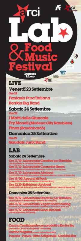 LAB come laboratorio aperto, come possibilità di mescolare tanti ingredienti di qualità: la musica, la cucina tradizionale, bio, a Km0 e vegan, la cultura del recupero e del riciclo, le buone pratiche a favore dell'ambiente (come l'eliminazione delle plastiche o la raccolta differenziata), l’artigianato, l’associazionismo e la socialità per tutti a ingresso libero.