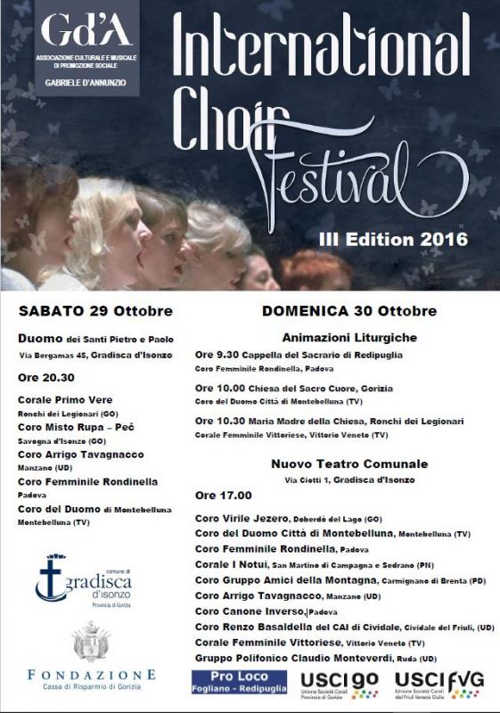 Il GdA International Choir Festival è un incontro di cori di diversa nazionalità uniti dall’universalità della musica ospitato nella splendida cornice della città di Gradisca d’Isonzo (GO), Italy.