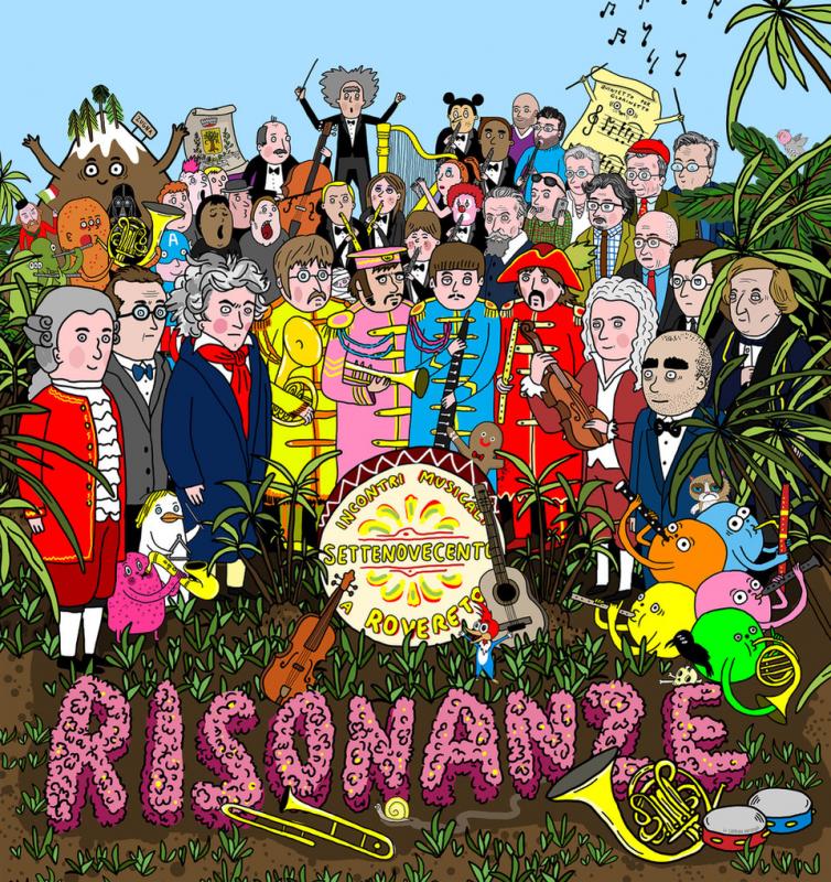 L’artista Laurina Paperina ha firmato la locandina del festival che riunisce, nella storica copertina di Sgt Pepper’s dei Beatles, a 50 anni esatti dalla sua uscita, gli artisti ospiti del festival e i compositori delle musiche eseguite: da Elio e i Fiati Associati a Beethoven, da Mozart a Vivaldi.