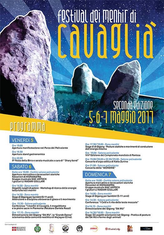 Il festival dei menhir di Cavaglià, in provincia di Biella, ha come scopo la valorizzazione del sito megalitico - composto da undici menhir (dal bretone "pietre lunghe") - riscoperto dal ricercatore torinese Luca Lenzi e recuperato dalla Sovrintendenza ai beni archeologici negli anni tra il 2002 e il 2005. Le attività proposte nel festival dei menhir spaziano da eventi dedicati alla gastronomia piemontese, come il campionato mondiale di panissa (piatto tipico regionale a base di riso), ad attività esperienziali come gli stage e le dimostrazioni di Qigong (antica disciplina salutistica e marziale, derivante in origine dalle danze sciamaniche), passando per concerti di musica celtica e popolare piemontese, conferenze sul megalitismo in Piemonte e sulle ritualità dei Celti, workshop di radiestesia, dimostrazioni di falconieri, giocolieri, gruppi di rievocazione storica dei periodi celtico e medievale, concerti e molto altro. L'intenzione degli organizzatori ( la Pro loco di Cavaglià, con il supporto dell'associazione culturale Forza Vitale e di Luca Lenzi Cigliuti ) è quella di creare un evento per valorizzare dal punto di vista culturale una zona ricca di testimonianze archeologiche uniche al mondo ( oltre ai menhir nel raggio di pochi chilometri si trovano anche il sito palafitticolo di Viverone e le miniere romane a cielo aperto della Bessa, senza dimenticare che Cavaglià è una tappa della Via Francigena). L'intenzione è dunque quella di unire la conoscenza e la cultura all'aspetto ludico, esperienziale ed enogastronomico, per creare un evento in grado di "soddisfare tutti i palati"!