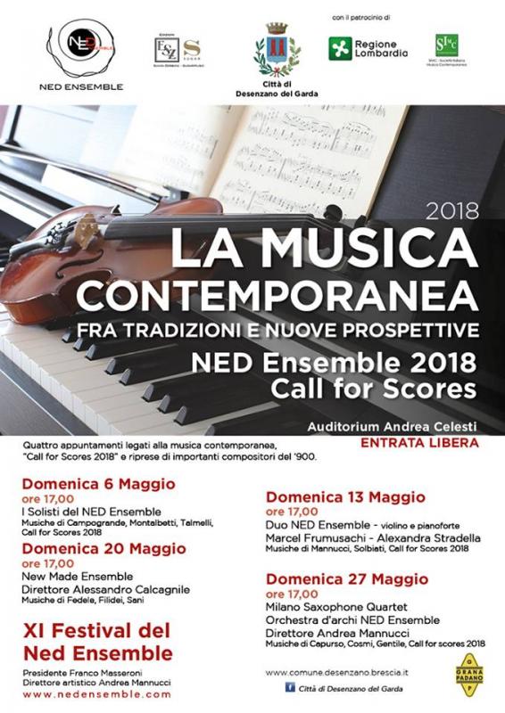 Il 6, 13, 20 27 maggio 2018 si tengono i quattro concerti dell'XI Festival del NED Ensemble "fra tradizioni e nuove prospettive".