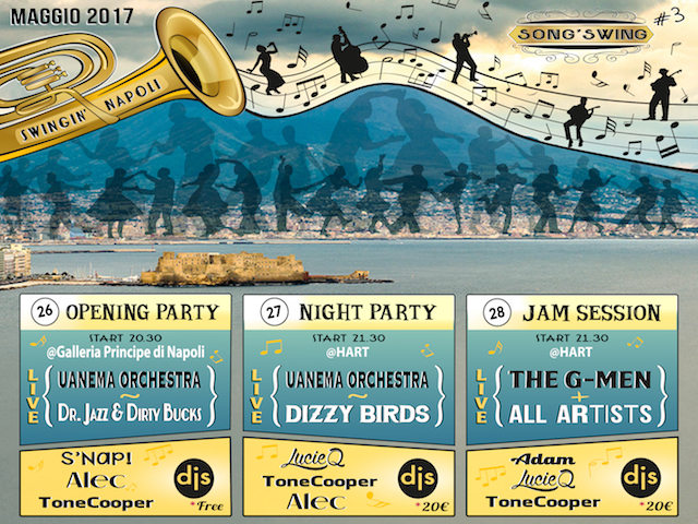 Giunto alla sua terza edizione, torna a Napoli dal 26 al 28 maggio, il Song’ Swing, l’unico Festival organizzato in Campania interamente dedicato allo Swing in tutte le sue forme.