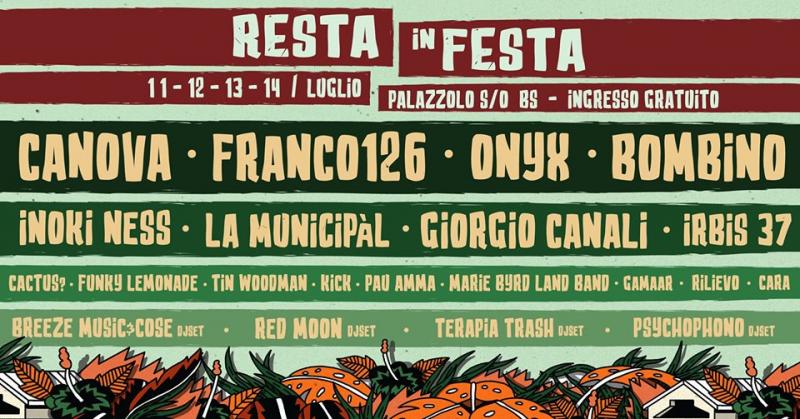 Dall'11 al 14 luglio 2019 torna la musica con Resta In Festa al Parco Metelli di Palazzolo Sull'oglio