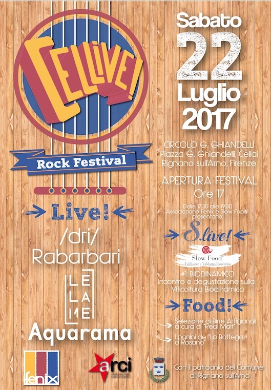 siete tutti invitati a S.Live : incontro sulla viticoltura biodinamica, che si terrà sabato 22 luglio dalle 17.30 alle 19.30 all'interno del CELLIVE ROCK FESTIVAL 2017 in Piazza Guglielmo Ghiandelli, Cellai - Rignano Sull'Arno (FI) organizzato Organizzato da Slow Food Valdisieve e Valdarno Fiorentino e dall' Associazione Fenix.