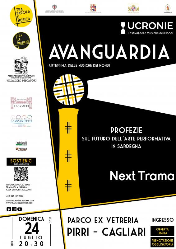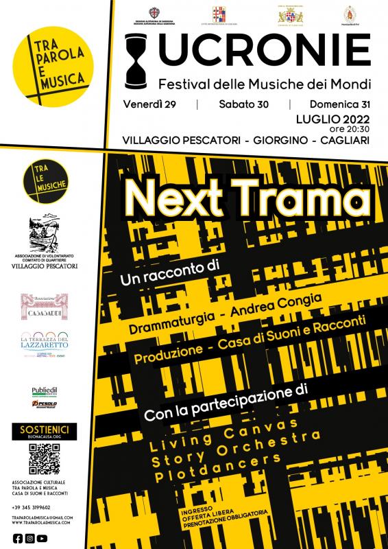 UCRONIE proseguirà poi con l’evocazione di NEXT TRAMA, il Mondo Musicale immaginario proposto quest’anno dal musicista e autore Andrea Congia, direttore artistico del Festival e dell’Associazione organizzatrice. L’immaginazione, l’idea fantamusicale, le performance, passando per racconti, drammatizzazioni, canti, composizioni musicali e coreutiche, daranno vita a un'azione immaginifica collettiva in cui Incontro, Intreccio e Interazione tentano di avere un 'altro significato rispetto alla nostra Realtà. Durante le performance in programma sarà la Musica, in qualità di amplificatore espressivo ed emotivo, a fare da collante estetico per tutte le altre Arti che, insieme, daranno fattezze e corpo e vita a queste “irreali realtà” in una costante elaborazione multiartistica.