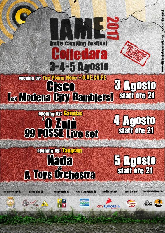 COLLEDARA – Il penultimo appuntamento della Rete dei Festival Indipendenti Teramani, promossa dal Comitato Provinciale Arci Teramo, è con lo IAME 2017, Indie Camping Festival, a Colledara, da domani a sabato 5 agosto.