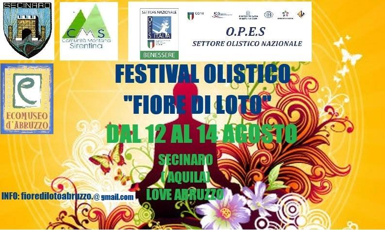 Nel grazioso comune di Secinaro nel cuore del parco naturale del Sirente, in provincia dell’Aquila, dal 12 al 14 agosto si svolgerà il “Festival Olistico Fiore di Loto”. Si tratta di un Evento volto a destare interesse verso le discipline Olistiche, la natura , e tutto ciò che riguarda il benessere del corpo e della mente di grandi e piccini.
