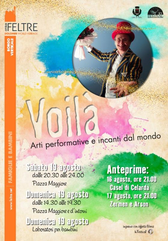 Gli artisti internazionali sono pronti a stupire il pubblico di Voilà Festival, rassegna internazionale di arte in strada, circo contemporaneo e culture del mondo, dal 16 al 19 agosto a Feltre.