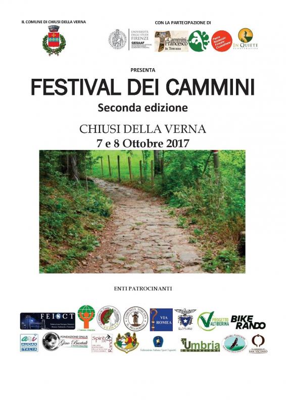 Il Comune di Chiusi della Verna, in collaborazione con il Gesaaf dell’Università di Firenze, il Parco Nazionale delle Foreste Casentinesi Monte Falterona e Campigna, l’Associazione i Cammini di Francesco in Toscana e la Cooperativa In Quiete, è lieto di invitarvi alla seconda edizione del Festival dei Cammini 2017. Due giornate di camminate, riflessioni, preghiera e cultura in un luogo che storicamente e naturalmente ha rappresentato e rappresenta oggi il centro ombelicale di incontro di importanti Cammini culturali laici e religiosi.