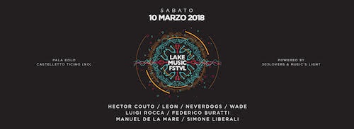Sabato 10 Marzo 2018 è il giorno del terzo Lake Music Festival presso il PalaEolo di Castelletto Ticino (Novara). Dalle 17:00 alle 05:00 del mattino senza interruzioni e con una line up di primo livello: Hector Couto, Leon, Neverdogs, Wade, Luigi Rocca, Federico Buratti, Manuel De La Mare, Simone Liberali e molti local heroes djs. In una posizione strategica, vicinissima a Milano, Bergamo, Torino, tre anni fa nasceva questo festival dalle caratteristiche uniche, in una zona geografica che normalmente non vede eventi sonori di questo tipo. Hector Chouto è uno dei “pesi massimi” internazionali, con uscite su tutte le label più importanti (Saved, Hot Creations, 20/20 Vision, Moon Harbour e Viva Music), nonché nominato da Resident Advisor nella sua classifica “top 100 most charted artists”. Leon è uno dei nomi legati dal 2014 al celebre format creato da Marco Carola, Music On, protagonista indiscusso ad Ibiza come in giro per il mondo. Stessa scuderia del celebre duo italiano Neverdogs, la cui storia inizia nel 2000 a Firenze. Attivissimi anche sul fronte musicale, il loro ultimo vinile è uscito lo scorso anno con il titolo “Brain Rebellion” su eMBI Music Limited e con due remixes a cura di Drag & Drop e Fortyseven, Franz Costa. Wade è spagnolo ed ha tra le sue produzioni 64 tracce “Top 100” su Beatport, 5 top 10 e 1 top 1 tech-house. Luigi Rocca è nella scuderia 303Lovers insieme a Manuel De La Mare, la loro etichetta discografica ottiene negli anni grandi riscontri su Beatport a cui seguono tour importanti in Sud America e in vari paesi del mondo. Federico Buratti ha avuto importanti esperienze al Movement Electronic Music Festival a Detroit e numerose sue produzioni sono state suonate da artisti presenti in questa edizione del festival. Simone Liberali è un giovane talento che si sta affermando, la sua traccia Cant’t You See ha raggiunto la seconda posizione nella chart Tech House di Beatport e la terza posione in quella “All Genres” diventando una delle tracce più suonate al Bpm Festival 2017!