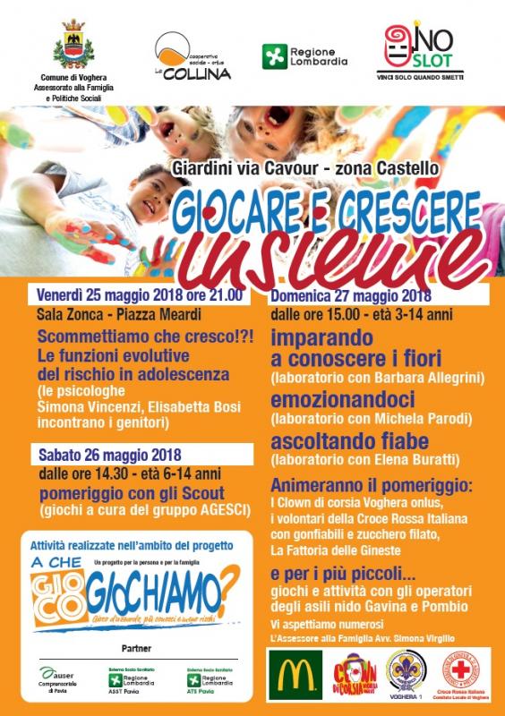 La Collina, con la partecipazione dei Clown di corsia, Agesci Voghera 1, Croce Rossa sezione di Voghera, McDonald’s, all’interno del progetto NO SLOT finanziato da Regione Lombardia punta a far ricoprire i valori del giocare sano ai più piccoli. Si tratta di attività legate al progetto contro il gioco d’azzardo “A che gioco giochiamo?” promosso dall’assessore alla Famiglia Simona Virgilio e finanziato da Regione Lombardia, con la partnership di ASST Pavia e Ats Pavia.