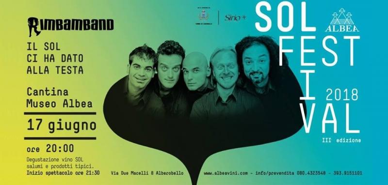 Buona musica, sano divertimento e invitanti degustazioni eno-gastronomiche costituiscono il ricco menu dell’edizione 2018 del ‘Sol Festival’, l'imperdibile evento promosso dalla ‘Cantina Museo Albea’ di Alberobello, tra le più antiche e accreditate aziende vitivinicole del territorio dei trulli.