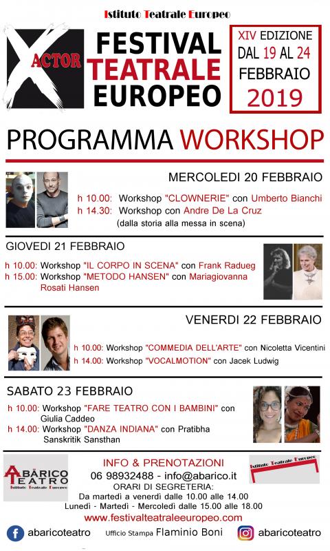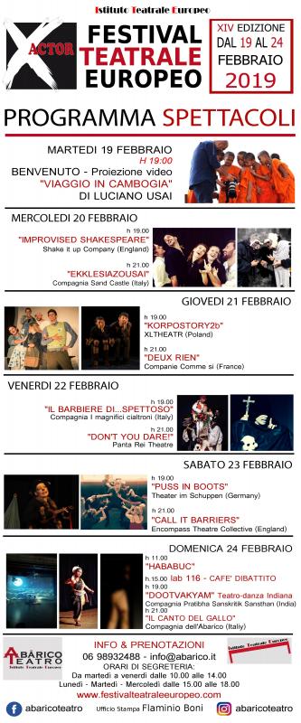 X ACTOR - Festival Teatrale Europeo è un progetto di scambio tra compagnie teatrali europee e offre la preziosa opportunità di partecipare ai workshop e assistere agli spettacoli di grandi Maestri europei (quest’anno ci sarà anche la presenza di un Maestro indiano) ognuno dei quali metterà al servizio dei partecipanti la propria professionalità, conoscenza, esperienza, e preparazione.