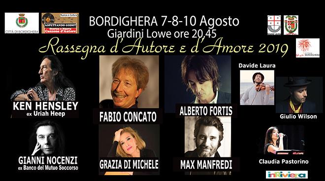 Bordighera 7-8-10 Agosto, grandi Artisti Storici e nuove realtà a ‘d’Autore d’Amore’ 2019