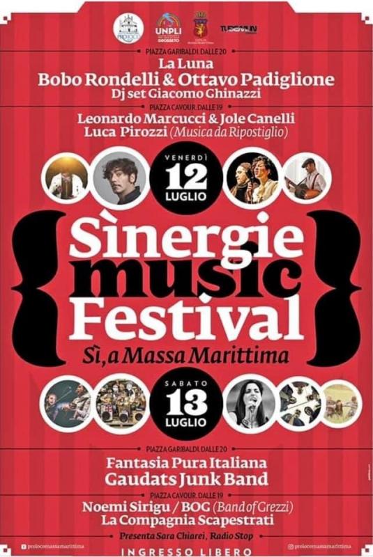 E’ tempo di Sinergie Music Festival, due giorni di musica di qualità nel contesto magico del centro storico di Massa Marittima. Dall’esperienza della Notte Bianca che ha visto un grande successo di pubblico negli anni passati, la Proloco di Massa Marittima rilancia organizzando due serate all’insegna della musica di qualità: si parte venerdì’ 12 luglio, in Piazza Garibaldi con il cantautore Bobo Rondelli che si esibirà in un concerto, spettacolo, ripercorrendo il repertorio del poetico e caustico crooner livornese. L’artista sarà di nuovo insieme ai “suoi” Ottavo Padiglione. Ad aprire la serata ci sarà il gruppo “La Luna”, band Elettro-Pop follonichese che da anni sperimenta nuove sonorità e a seguire dj set del massetano Giacomo Ghinazzi dj, producer e remixer, che a partire dalla mezzanotte farà ballare tutta la piazza. L’evento sarà presentato da Sara Chiarei di Radio Stop. In Piazza Cavour invece La chitarra acustica sarà la protagonista indiscussa con Leonardo Marcuccichitarrista toscano che ha seguito tutte le tappe che un giovane artista può toccare inseguendo una crescita musicale di qualità con la vocalist Iole Canelli. Special guest LUCA PIROZZI ,il cantante, chitarrista, benjoista e leader del gruppo Musica da Ripostiglio .