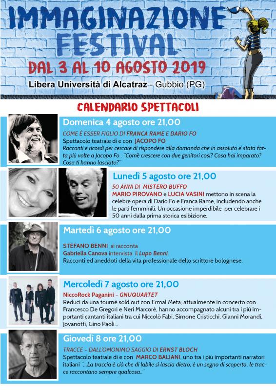 Mettiamo insieme le due cose e concediamoci una settimana o anche solo qualche giorno o una serata dove parlare, giocare, inventare, cantare, ballare, costruire e soprattutto nutrire la nostra immaginazione insieme a chi, dell’immaginazione, ne ha fatto mestiere, vita e passione.