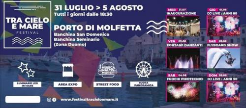 A Molfetta in provincia di Bari si svolge nei giorni dal 31 Luglio al 05 Agosto 2019 il Festival Tra Cielo e Mare.