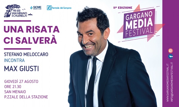 Torna anche quest’anno il “Gargano Media Festival” con un appuntamento unico, in programma giovedì 27 agosto alle 21.30 nel Piazzale della Stazione di San Menaio che vedrà ospite Max Giusti.