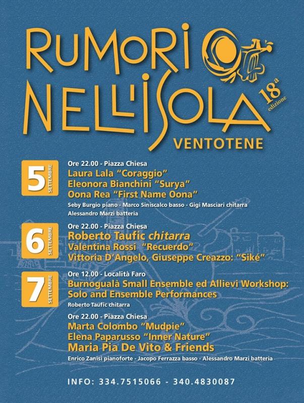 Dal 5 all’8 settembre torna sull’isola di Ventotene l’appuntamento con il festival di musica jazz “Rumori nell’isola”. Giunto ormai alla sua 18esima edizione l’evento si conferma come la manifestazione di riferimento all’interno delle attività culturali dell’isola per quanto riguarda la musica e il jazz in particolare.