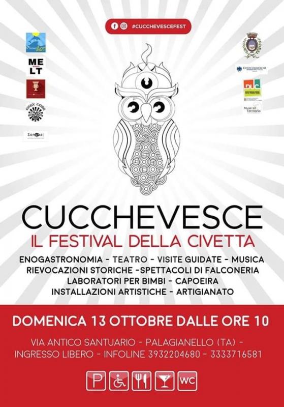Una gravina mozzafiato, chiese rupestri e un castello medievale che si vestono a festa. Con enogastronomia, teatro, rievocazioni storiche, musica, visite guidate e lo sguardo vigile di chi, da queste parti, regna sovrano. Arriva a Palagianello la prima edizione del “Cucchevesce- Il Festival della Civetta”, in programma domenica 13 ottobre dalle 10 e sino a sera. Non casuale la scelta di questo animale come simbolo della manifestazione: la sua capacità di vedere al buio ne ha fatto un emblema del saper andare oltre al punto che, nel mondo greco, era sacro ad Athena, divinità legata proprio alla sapienza e alla saggezza.