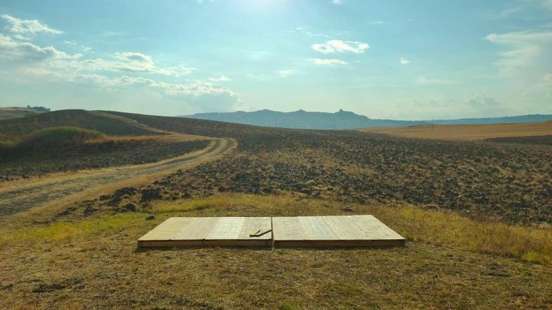 Si tratta realmente di uno dei praticabili che viene montano per l’oramai tradizionale “concerto al tramonto” lungo la Francigena.