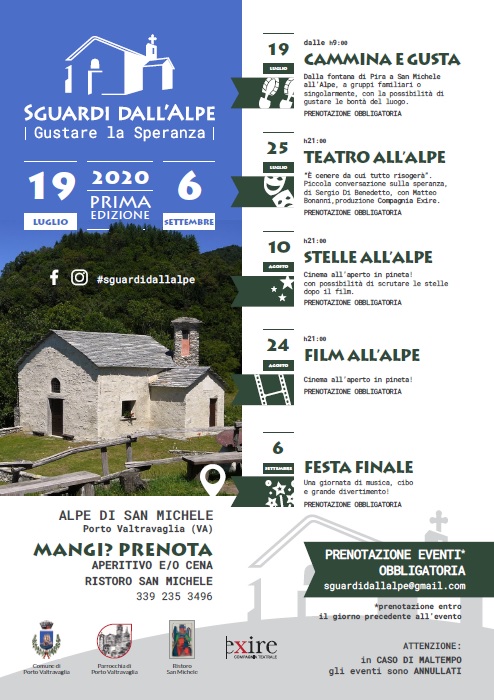 Il Comune e la Parrocchia di Porto Valtravaglia, il Ristoro San Michele e la Compagnia teatrale Exire sono infatti lieti di presentare la prima edizione del Festival “Sguardi dall’Alpe”, quest’anno dedicato al tema della speranza.