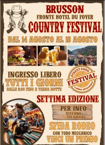a Brusson in provincia di Aosta si svolge nei giorni dal 14 al 18 Agosto 2024 la manifestazione Country Festival, fronte Hotel du Foyer.