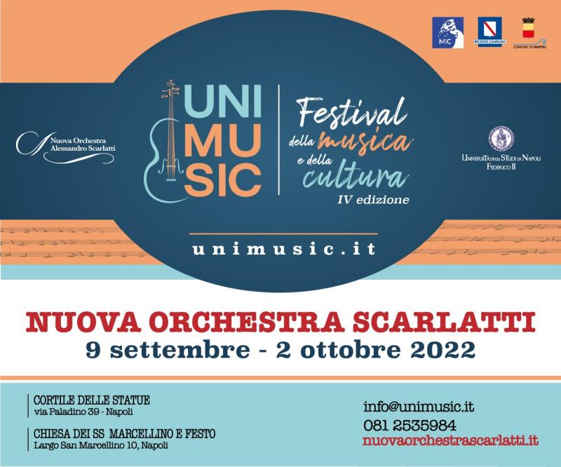 Unimusic, il Festival della musica e della cultura ideato e realizzato dalla Nuova Orchestra Scarlatti, in partnership con l’Università Federico II di Napoli, giunge alla IV Edizione. Si parte con un’inaugurazione doppia, due eventi diversi, entrambi di grande interesse, nella grande e suggestiva cornice del Cortile delle Statue della Federico II di Napoli, in Via Paladino 39: venerdì 9 settembre 2022 ore 20.30, appuntamento con Incompiuta 200°, la Sinfonia Incompiuta di Schubert, il misterioso capolavoro che nel 1822 il giovane Franz non riuscì a portare avanti oltre il secondo movimento, proposta 200 anni dopo in un’inedita versione completa di un terzo e di un quarto movimento elaborati dal M.° di origine istriana Nicola Samale, a partire dagli appunti autografi dello stesso Schubert. Una proposta stimolante, che sarà preceduta da alcune gemme vocali e strumentali di Durante, Pergolesi e Porpora alla scoperta del versante più sentimentale e intimo del ‘700 napoletano, degna introduzione al mondo schubertiano. Dirige la Nuova Orchestra Scarlatti il giovane direttore campano Alfonso Todisco. Partecipa il soprano Gabriella Colecchia.