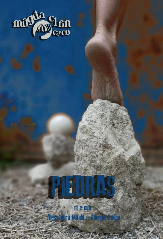 Piedras è un omaggio alla terra del Monferrato per un viaggio circense attraverso le diverse ere geologiche. Piedras esplora il movimento attraverso forme nuove, con nuovi pesi, dando vita ad un dialogo tra corpi irregolari, asimmetrici e ruvidi: una moltitudine di pietre, di sassi, di massi quale genesi di inusuali e sorprendenti punti di equilibrio.