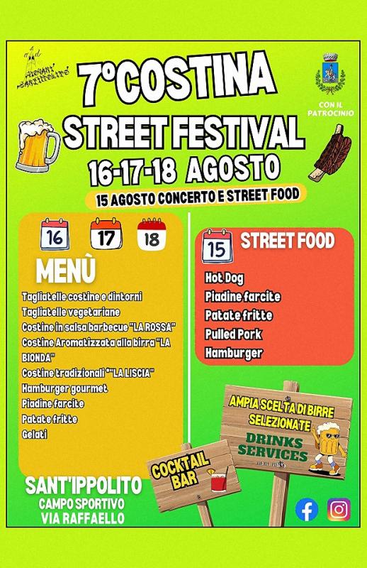 A Sant'Ippolito in provincia di Pesaro e Urbino si svolge nei giorni 16, 17, 18 Agosto 2024 la 7a edizione di Costina Street Festival.
