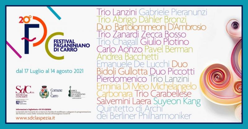A Carro in provincia di La Spezia si svolge nei giorni dal 17 Luglio al 14 Agosto 2021 la 20a edizione del Festival Paganiano di Carro.