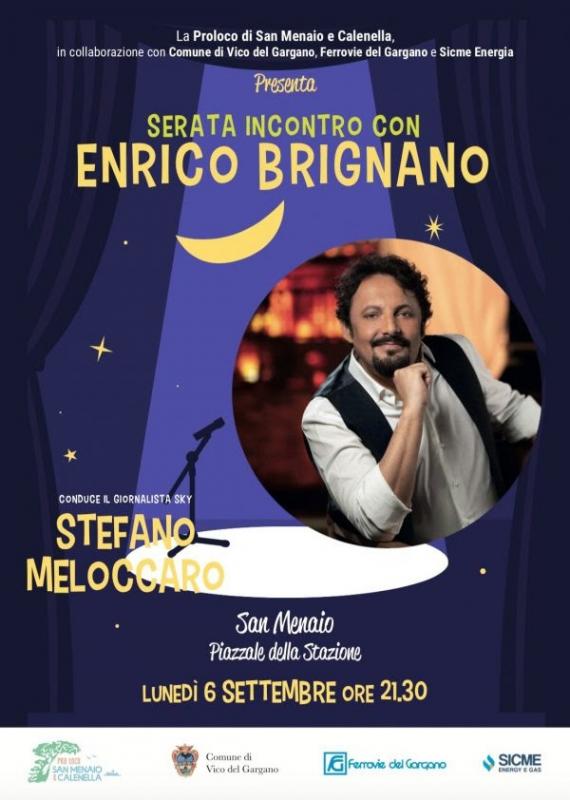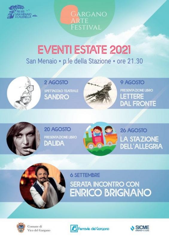 Sarà il comico e showman Enrico Brignano a chiudere la rassegna Gargano Arte Festival - organizzata dalla Pro Loco di San Menaio e Calenella in collaborazione con il Comune di Vico del Gargano, Ferrovie del Gargano e Sicme Energy & Gas - che per oltre un mese ha regalato serate evento all’insegna della cultura e dello spettacolo.