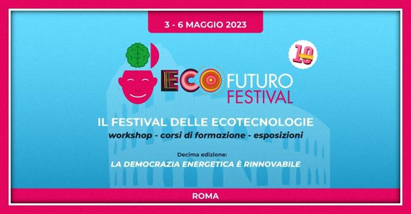 Dal 03 al 06 Maggio, torna a Roma per la 10a edizione Ecofuturo Festival, il festival gratuito sull'innovazione ecotecnologica, l'eco formazione e molto altro.