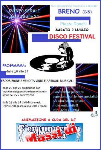 In Piazza Ronchi a Breno in provincia di Brescia si svolge nella giornata di Sabato 02 Luglio 2022 la manifestazione Disco Festival.