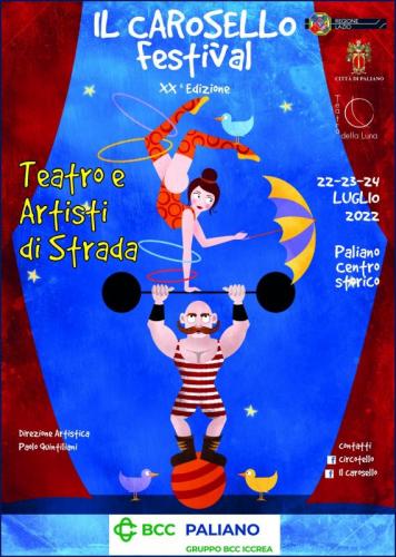 Il Carosello Festival, proporrà spettacoli rigorosamente gratuiti . Street band, spettacoli di Circo contemporaneo, teatro e artisti di strada si esibiranno a Paliano ravvivando la magia di un Festival che resiste e arriva a festeggiare la sua XX Edizione.
