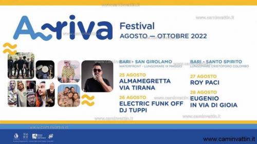 Si parte dal Waterfront di San Girolamo con un doppio appuntamento: il 25 agosto alle ore 22 la miscela di trip hop e dub partenopeo degli Almamegretta, che per l’occasione presenteranno “Senghe”, il nuovo album di inediti pubblicato da The Saifam Group; a seguire il gruppo internazionale Via Tirana, band indie-dance che mescola ripetitivi ritmi di batteria da ballo e bassi dinamici con sintetizzatori, chitarre e voci accattivanti. Sempre nella stessa piazza il 26 agosto saliranno sul palco gli Electric Funk Off, un progetto nato dall’idea di Nanni Gaias per dare una sonorità più elettrica ai brani che Dario Cecchini scrive da più di 25 anni per la Funk Off. La serata prosegue all’insegna delle buone vibrazioni funk e soul con il dj set di Tuppi. La programmazione continua e si sposta a Santo Spirito sul Lungomare Cristoforo Colombo: il 27 agosto alle ore 22 è la volta di Roy Paci che con il suo “Remix Tour” trasformerà la piazza in una “fiesta total” con ritmi e sonorità evolute di radice latina contaminate con il resto del mondo, passando dalle tribù africane fino alle bande musicali. Il 28 agosto stesso luogo, stessa ora, in esclusiva regionale gli Eugenio In Via Di Gioia, band indie folk-pop-rock torinese che presenterà il quarto disco "Amore e Rivoluzione".