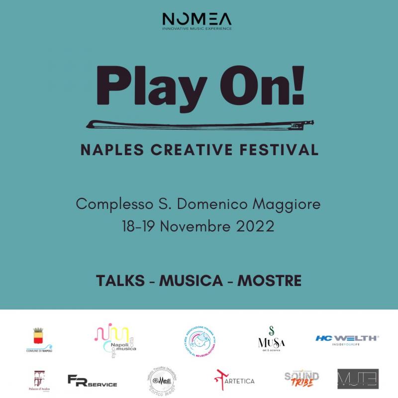 Nell’ambito di ‘Napoli città della Musica’ nasce il ‘Play On! Naples Creative Festival’, il 18 e 19 novembre 2022 nella splendida cornice del complesso monumentale di San Domenico Maggiore, un'imperdibile occasione con eccellenze territoriali nell’ambito della cultura e della musica.