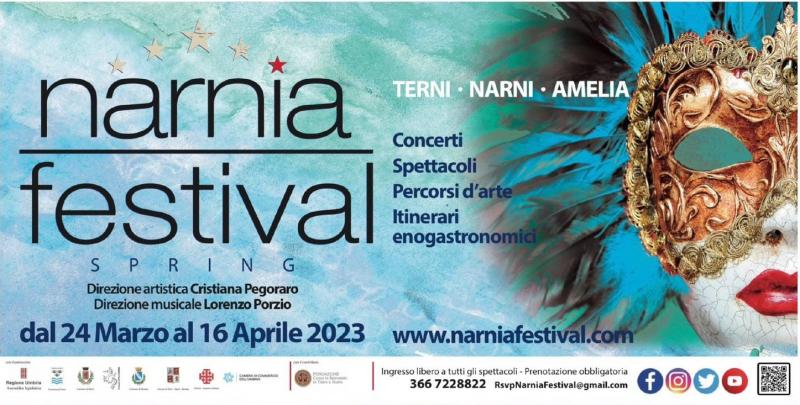 Dopo il successo della prima edizione, torna il Narnia Festival Spring, l’edizione primaverile dell’ormai celebre Narnia Festival ideato da Cristiana Pegoraro e di cui la pianista è anche direttore artistico, mentre la direzione musicale è affidata al maestro Lorenzo Porzio, direttore d’orchestra e compositore. Il Narnia Festival spring, organizzato con il contributo della Fondazione Carit, si sviluppa in due weekend, dal 24 al 26 marzo e dal 14 al 16 aprile, e tocca le città di Narni, Terni e Amelia con sei appuntamenti tra concerti e spettacoli, in cui la musica spazia dalla classica al jazz fino al pop, a cui si aggiungono in cartellone percorsi d’arte e itinerari enogastronomici.