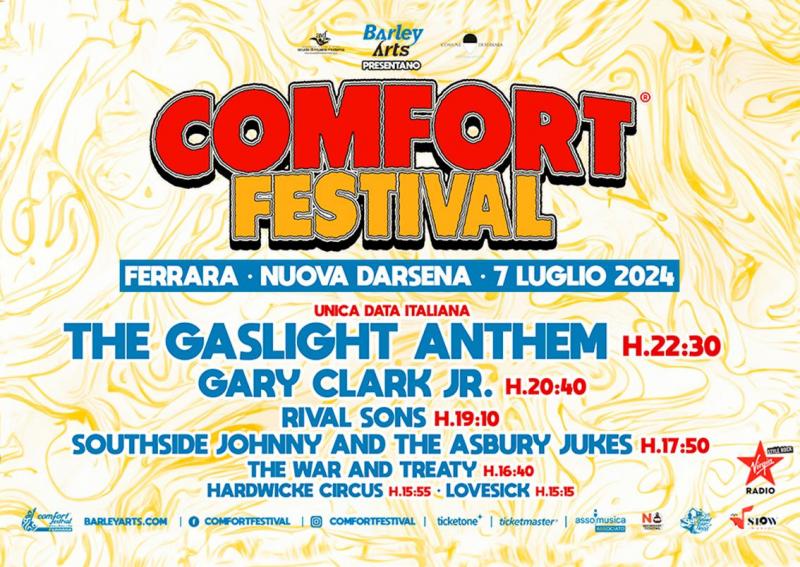 Il blues rock dei californiani Rival Sons sarà protagonista nel tardo pomeriggio del Comfort Festival®, reduci dai successi dei due album ‘Darkfighter’ e ‘Lightbringer’ pubblicati nel 2023, che promettono scintille così come ci hanno abituato Southside Johnny & The Asbury Jukes, formazione amatissima dagli estimatori del New Jersey Sound e, ovviamente, dai fan di Bruce Springsteen e la E Street Band.