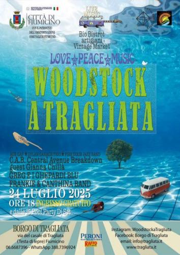 Nuovo appuntamento con WOODSTOCK A TRAGLIATA, evento nato nel 2011 all’interno della dimora storica del Borgo di Tragliata, che vedrà come al solito protagonista la musica, insieme a mercatini, artisti del territorio, associazioni solidali e per l’ambiente, prodotti bio, street food e anche un Dj set in Piscina in cui sarà possibile accedere gratuitamente già dalle 15.