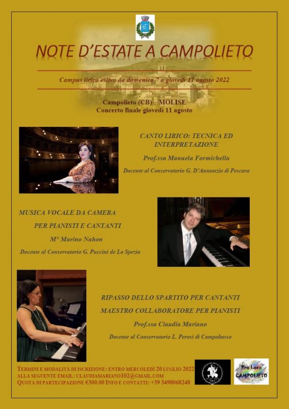 Le lezioni saranno individuali e giornaliere finalizzate alla realizzazione di un Concerto finale che avrà luogo giovedì 11 agosto 2022.