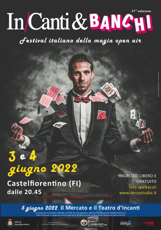 Il mago e il ventriloquo. L’incantatore e l’illusionista. Il giocoliere e il manipolatore di ombre. E poi scatenate band itineranti per le vie del centro, spettacoli e gag d’improvvisazione teatrale, mercato di artigianato, mostre, trippa. Da venerdì 3 a domenica 5 giugno torna In/Canti e Banchi, primo festival della magia “Open Air”, che animerà le vie, le piazze, i vicoli del centro storico di Castelfiorentino, attraverso una sequenza di spettacoli su postazione fissa o itinerante, tutti a ingresso gratuito (negozi aperti).Avvio scoppiettante fin dal venerdì sera (dalle 21.00), con la musica di due band che si impadroniranno letteralmente del centro storico alto e basso: in via Tilli, un rocambolesco ensemble di musicisti (la “Banda storta parade”) si esibirà attraverso una serie di brani di ispirazione circense, tra swing, dixieland, balkan music e klezmer, mentre in via Garibaldi la “Magicaboola Brass Band” darà vita a girandola di musiche trascinanti e ballabili (jazz, blues, etnica, hip hop, funk) coinvolgendo il pubblico per l’intera serata (21.00, 22.15, 23.15), e alternandosi tra una esibizione e l’altra con la “Banda storta parade”.Dalle 21.15 i primi spettacoli di magia, con replica: in Piazza del Popolo Saeed Fekri (“l’incantatore”) stupirà grandi e piccini con i suoi numeri straordinari, mentre nei giardini ex arena il ventriloquo Nicola Pesaresi ci sorprenderà con i suoi Pupazzi destinati a dominare il pianeta. Quasi in contemporanea, in Via Tilli (ore 21.15 e 22.30) sarà possibile imbattersi in “incontri ravvicinati con il Mago” (Andrea Mancusi) abilissimo con le carte e pronto a stupire chiunque abbia intenzione di sfidarlo. Alle 22.00 Piazza Stanze Operaie ospiterà Andrea Sestieri e il suo show (“Illusionismi”), una roulette russa per i cinque sensi che lascerà tutti a bocca aperta, mentre Piazza Gramsci Jorge Zeta delizierà i presenti con “Brutus” il suo pappagallo ribelle.Sabato 4 giugno (dalle 21.00) la Girlesque Street Band, la prima e unica street band italiana tutta al femminile, irromperà in via Tilli dalle 21.00 con la sua grinta e il suo entusiasmo, mentre nel centro storico basso la Badabimbumband (“Wanna Gonna Show”) si scatenerà con i suoi brani trascinanti e le sue coreografie, spaziando tra il folklore greco e quello finlandese, tra la tradizione bulgara e quella portoghese. In via Bovio appariranno come per incanto alle 21.30 D’artagnan e il magico Matteo, che si esibiranno in uno spettacolo di bolle e magia, mentre in Via Tilli alcune piante (“L’olivo e l’invasato”) prenderanno vita scherzando con i passanti; In Piazza del Popolo Federico Pieri con “Fellinik” renderà un omaggio poetico a Federico Fellini attraverso una tecnica mista di ombre cinesi, manipolazione della sabbia e disegno creativo; nei giardini ex arena “Rex”, uno show elettrico con numeri mai visti prima: giocoleria con acqua ad alta pressione, elettrodi che trasformano persone in strumenti musicali, esplosioni di liquidi fuorescenti. In piazza Stanze operaie due eccentrici panettieri con velleità circensi faranno lievitare l’impasto del pane con scherzi e giochi di ogni sorta, mentre in Piazza Gramsci la compagna Samovar si esibirà in uno spettacolo di musica, circo, teatro fisico.Domenica 5 giugno, dalle ore 9.00 in Piazza Gramsci, è in programma il “mercato d’incanti” con artigianato, (new brands, dischi, vintage, piante, libri, arte) e prodotti tipici locali promosso da ufficio turistico, proloco e Pettinato. Nel pomeriggio dalle 15.30 “Teatro d’incanti”, con le compagnie locali e quattro spettacoli imperdibili: “Il mago fascinorum” (Il Cerchio di Gesso), la “chiassata alle finestre” (Il Cerchio di Gesso), “Radici” (Gat teatro) e infine “La magia del cinema” a cura di TeatroCastello, Passi di Luce, Accademia di danza di Certaldo, Scuola di Musica di Castelfiorentino. Sempre di domenica ci saranno anche giochi e occasioni di divertimento per i piu piccoli.Dal venerdì alla domenica sarà possibile gustare la famosa trippa alla castellana (piazza Cavour, ore 20.00) e visitare numerose mostre: “Metamorfosi Mobiles Economia Circolare e bellezza” (installazioni), Fashion day 2022 (sala via Tilli 1), “C’era una volta.. Castello” (spazio circolo ricreativo, corso Matteotti); Per chi desidera scoprire una Castelfiorentino insolita non si perda inoltre sabato 4 giugno la presentazione ai giardini ex arena (ore 18.00) del libro “Firenze e la Toscana. Le buchette del vino” di cui due si trovano proprio a Castelfiorentino.“Finalmente riparte anche In/Canti e Banchi” – osserva il Sindaco, Alessio Falorni – di cui abbiamo rinnovato alcuni anni fa il format come festival della magia open air, che ha riscosso un notevole successo e propone a questa edizione alcuni tra i migliori talenti italiani di questo mondo suggestivo e affascinante, nel quale i confini tra apparenza e realtà diventano quasi impercettibili. Tre giorni all’insegna del divertimento, ma anche della musica, grazie soprattutto al ritorno delle street band dopo due anni di pandemia in cui siamo stati obbligati a organizzare spettacoli con posti assegnati a sedere. Una festa per riscoprire la bellezza del nostro centro storico e condividere di nuovo la gioia di stare di insieme. Un ringraziamento speciale alla direzione artistica di Terzostudio, alle nostre associazioni che hanno collaborazione all’organizzazione del festival e agli sponsor per il loro contributo alla manifestazione”