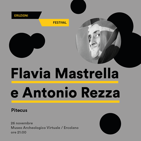 In particolare all'auditorium del museo Mav, il giorno 26 Novembre alle ore 21, Flavia Mastrella e Antonio Rezza saranno nostri ospiti con il mitico spettacolo Pitecus. Ingresso gratuito con prenotazione obbligatoria.