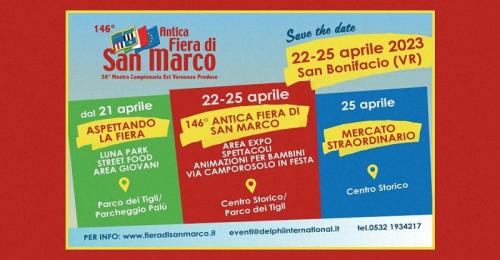 La 146a FIERA DI SAN MARCO si terrà a San Bonifacio (VR) dal 24 al 28 Aprile 2024 con ampia Area Espositiva, Spettacoli e Animazioni.