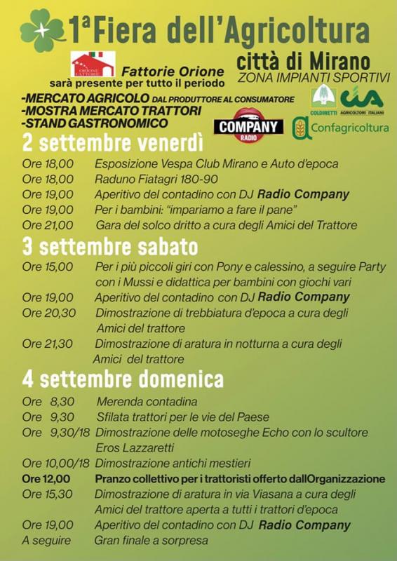 Fiera dell'Agricoltura Citta' di Mirano ZONA IMPIANTI SPORTIVI -MERCATO AGRICOLO DAL PRODUTTORE AL CONSUMATORE - MOSTRA MERCATO TRATTORI - STAND GASTRONOMICO
